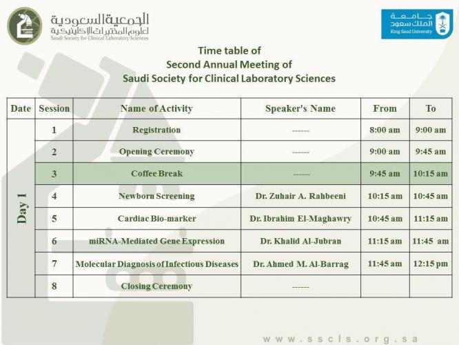 أقامت الجمعية السعودية لعلوم المختبرات الإكلينيكية و بحضور وكيل وزارة الصحة للمختبرات وبنوك الدم د.إبراهيم العمر بتاريخ 26-12-2015
